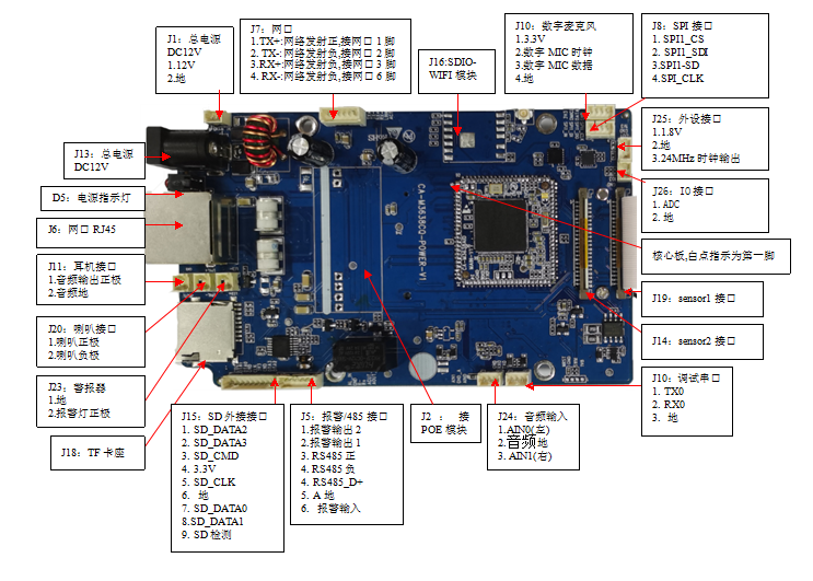 IO口 | 3.3V電平,可做報(bào)警輸入、報(bào)警輸出、復(fù)位、狀態(tài)指示、IR-CUT控制、單片機(jī)通訊、RS485使能、4G使能、WIFI使能、音頻使能等 | ||